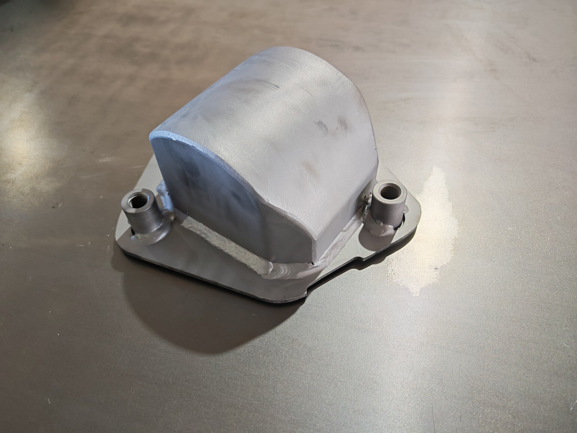 Die Grundplatte ist aus 3mm und die Schale aus 2mm dicken Stahlblech.